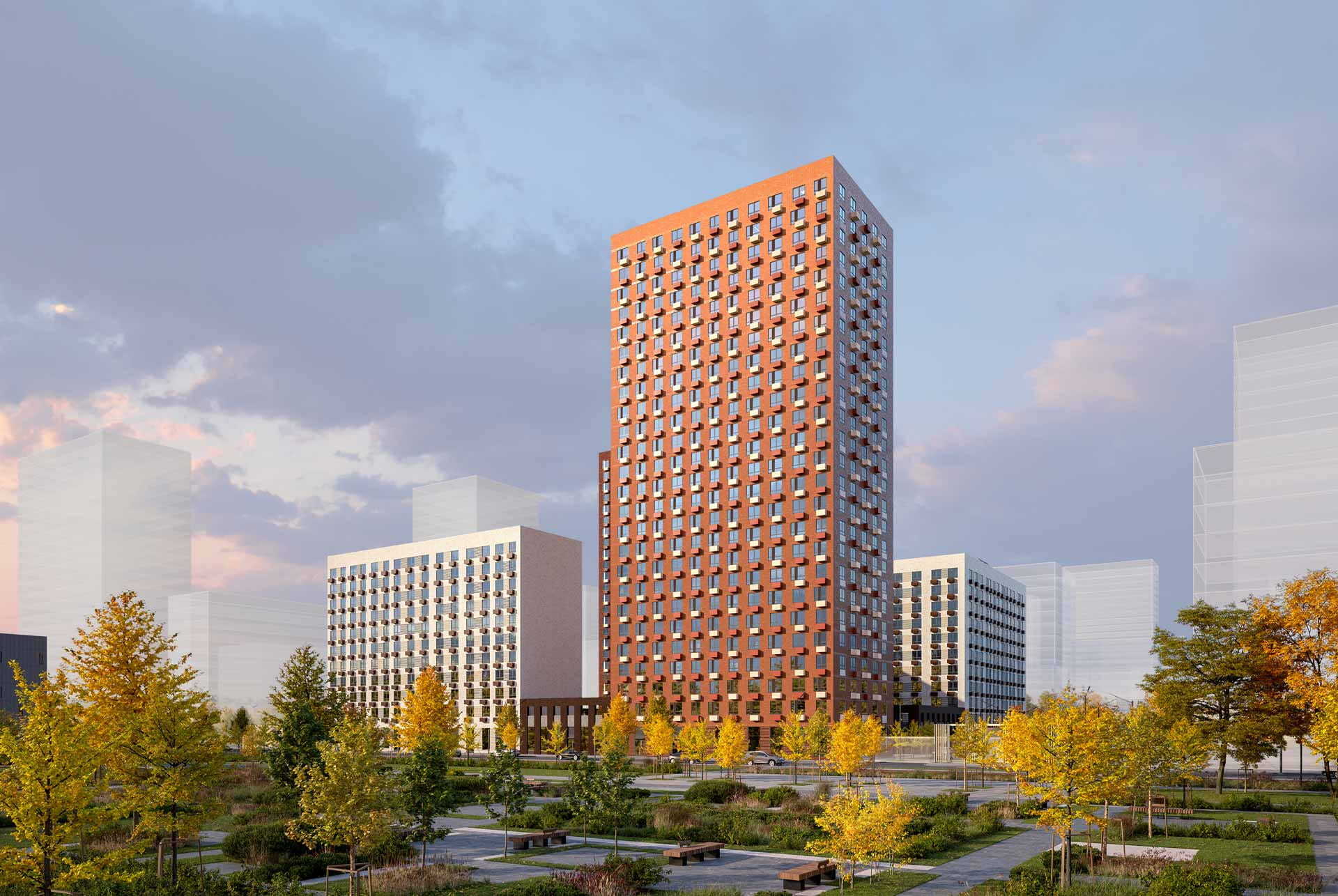 The buildings are 11 and 25 floors tall. The total area of the apartments is 442,713 m². Spacious and bright entrances facing both the courtyard and the street will be located at ground level. The first floors of the houses will feature shops, cafes and other services. Individual storerooms are provided on the underground floors. The green courtyard parks will have modern playgrounds and workout zones, as well as recreation areas.
